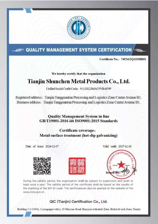 شونچن کی سینئر مینجمنٹ کے پاس ہاٹ ڈِپ گیلوانائزنگ پروڈکشن میں 20 سال سے زیادہ کا تجربہ اور ٹیکنالوجی ہے۔