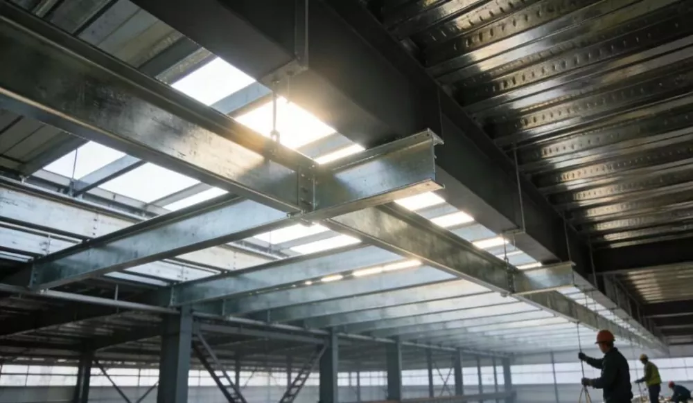 تعمیراتی مواد کی صنعت: سٹیل کے ڈھانچے کی ورکشاپس کے لیے پورلن اور روف جوسٹ کی تنصیب کے منظرنامے
