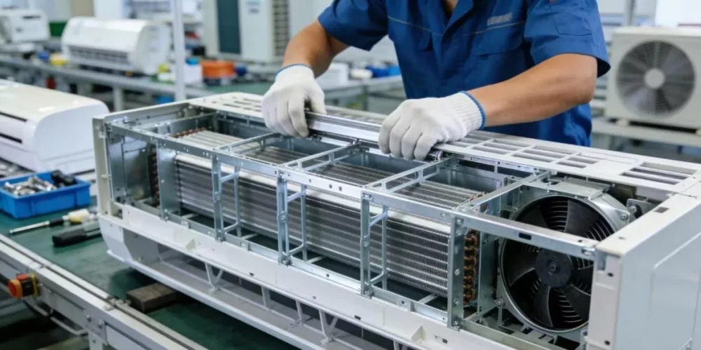 ریفریجریٹرز اور ایئر کنڈیشنرز کے بیرونی شیل فریم اور اندرونی معاون اجزاء کے لیے استعمال کیا جاتا ہے۔ واشنگ مشینوں کے لیے بیس فریم؛ ڈسپلے کے لیے فریم اور بریکٹ؛ ڈھیروں وغیرہ کو چارج کرنے کے لیے بیرونی شیل فریم اور اندرونی کوندکٹو سپورٹ اجزاء۔ ہلکا پھلکا، زیادہ درستگی، اور جمالیاتی لحاظ سے خوش کن سطح کی ضرورت ہے، اور اضافی عمل جیسے کہ چھدرن اور موڑنے کو مربوط کیا جا سکتا ہے۔