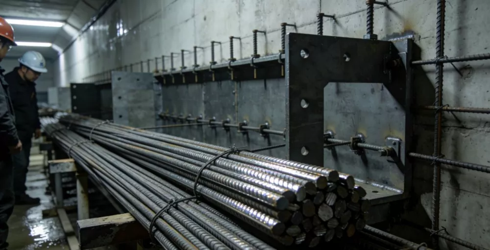 کوائل ایپلی کیشن میں ڈیفارمڈ بار: انڈر گراؤنڈ پائپ گیلری مین باڈی کی مضبوطی کے مطابق، اعلی طاقت اور شگاف مزاحمت کے ساتھ، زیر زمین مرطوب ماحول اور ساختی تناؤ کے خلاف مزاحمت کے لیے ایمبیڈڈ پلیٹوں اور ایمبیڈڈ بولٹس کے ساتھ تعاون کریں۔